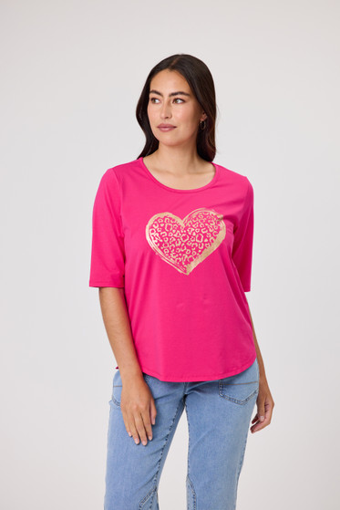 Round bound neck tee is made of cotton elastane. Set in short sleeve length. Placement print at front. 95% Cotton 5% Elastane